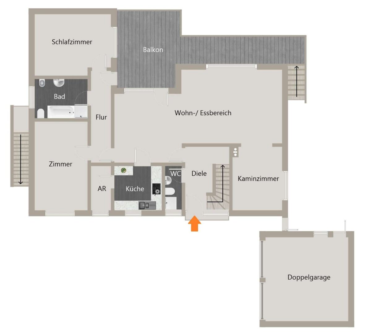 Durch einfache Umbaumaßnahmen können Sie die das Haus auch als Einfamilienhaus nutzen. Hierfür ist im Keller lediglich ein Durchbruch zur Einliegerwohnung nötig.