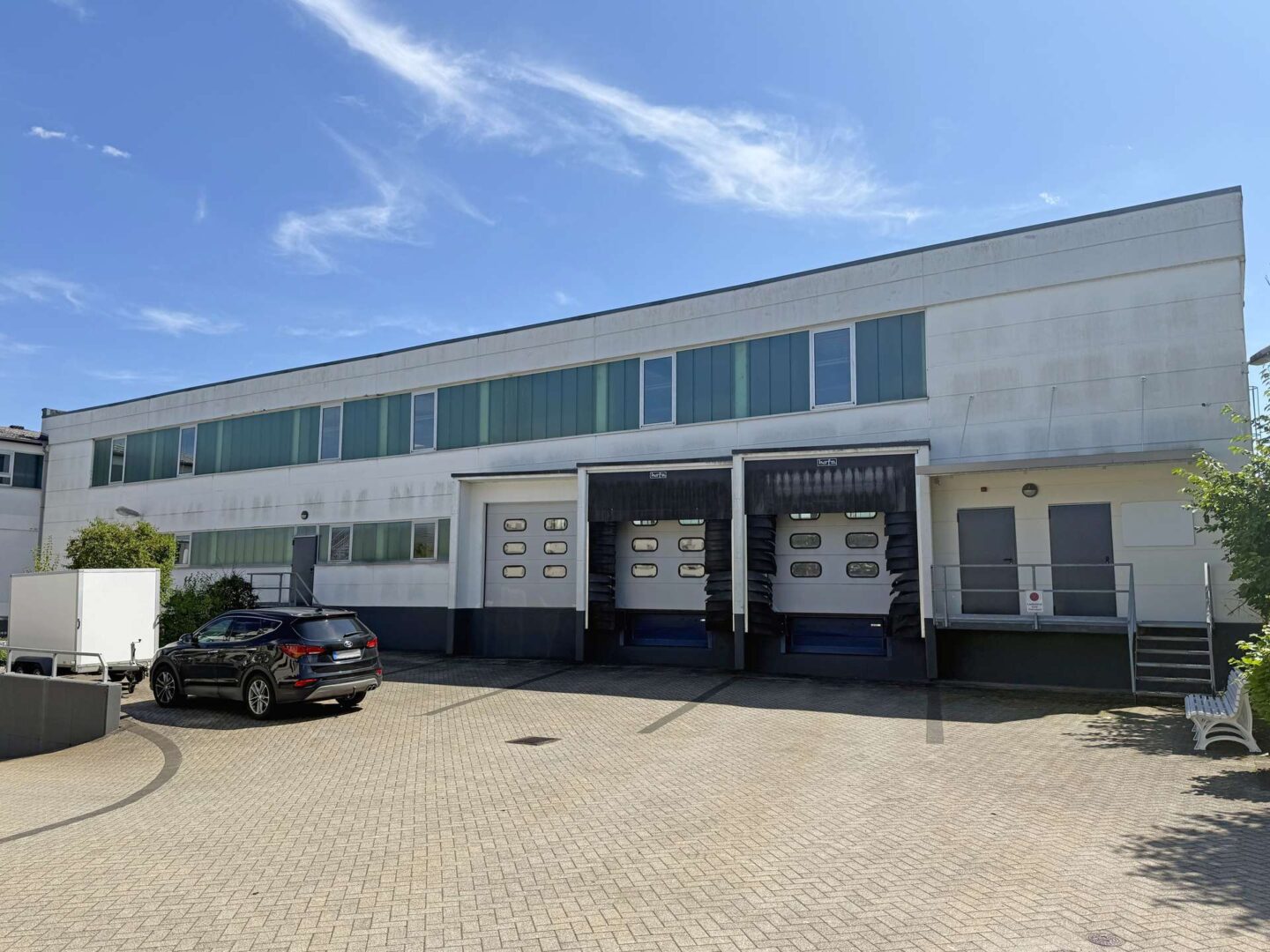 Die beeindruckende Hallenhöhe von 7 Metern ermöglicht eine flexible Nutzung und Lagerung Ihrer Güter. Drei Rolltore (Maße: B 2,80 m x H 2,75 m) gewährleisten ein bequemes und unkompliziertes Be- und Entladen. Zusätzlich sind zwei der drei Tore mit elektrischen Verladerampen ausgestattet, welche den Materialumschlag erleichtern.